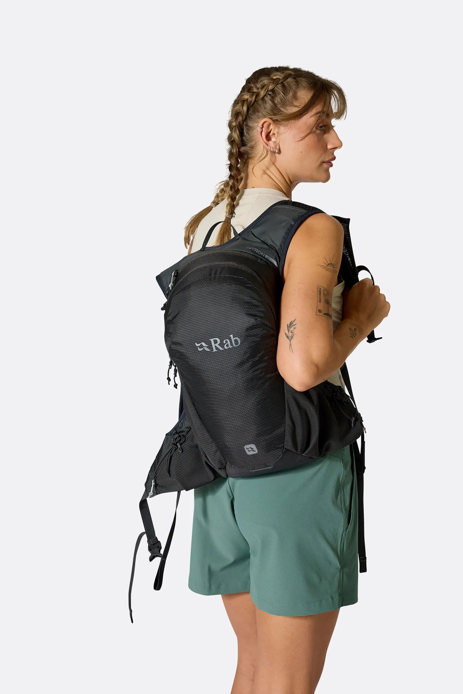 This is our definitive, streamlined pack for minimalist day hikes and moving at pace on technical trails. Built with a comfortable vest-style harness and malleable, body-hugging back system, it remains stable and enables dynamic movement on all terrain. With a lightweight, modern design and on-the-go access to pockets, it keeps you pushing onwards without holding you back.