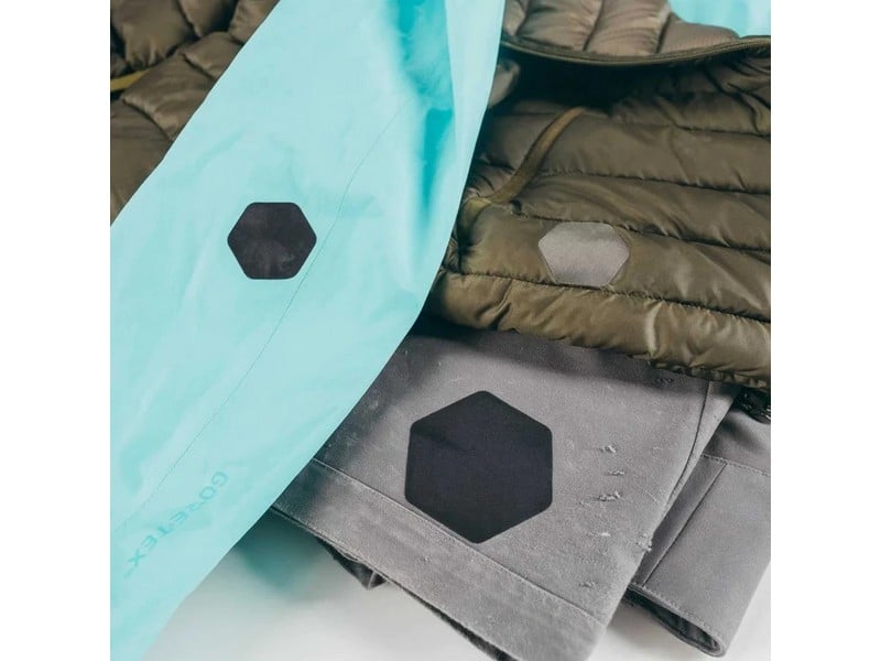 Reach for Tenacious Tape whenever a tear or rip happens. Quickly fix tents, ski pants, or puffy coats with this strong, weatherproof tape that comes in GEAR AID’s signature hex shape. The unique design allows for technical repairs, able to be placed along seams and zippers without hand trimming. Backed by an ultra-aggressive adhesive, it won’t peel off when applied to technical fabrics including nylon and vinyl. The small hex is perfect for baffles on down sweaters, sleeping bags, and backpacks while the large hex fixes bigger repairs on tents, sleeping pads, and waders. Neutral colors blend in on traditional outdoor and hunting fabrics; solid black is perfect for dark fabrics; clear works for nearly transparent repairs on any color fabric.