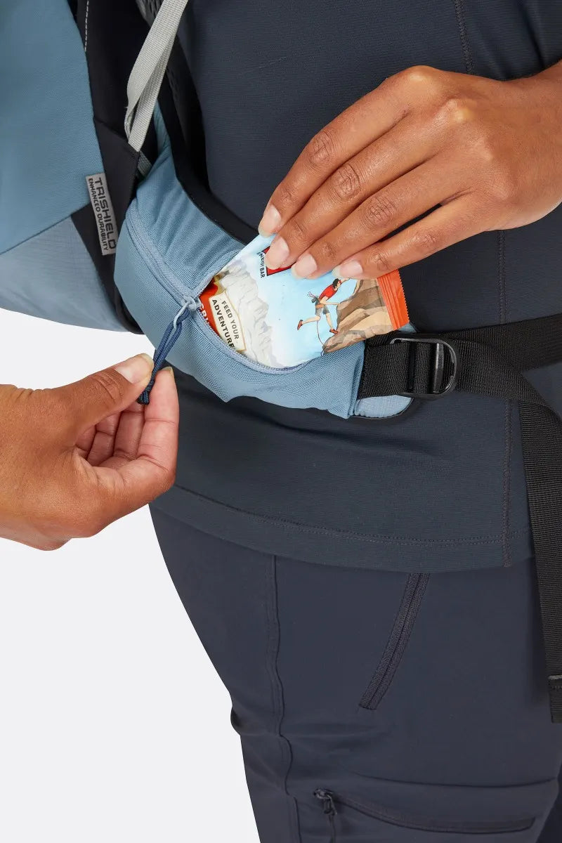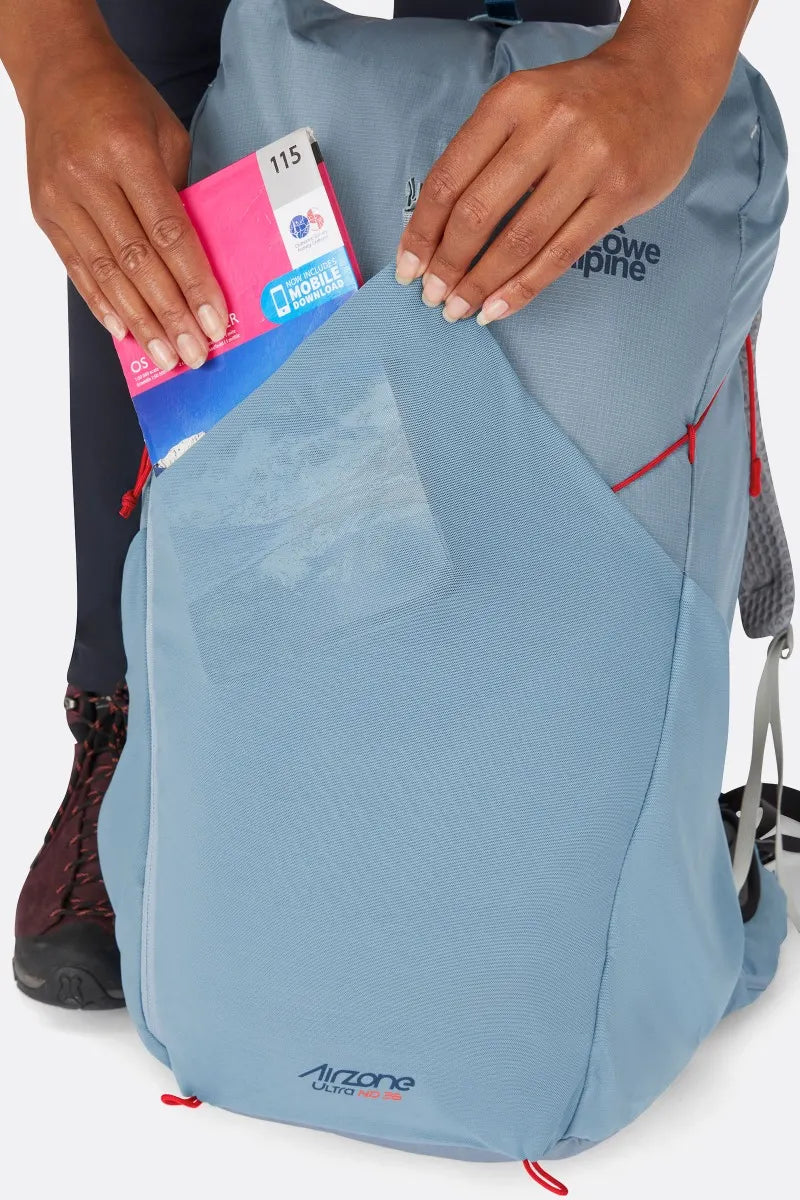 The AirZone Ultra’s details have been designed to keep weight and bulk to a minimum, from the ultralight compression straps which help to stabilise your load, to the easy-access, simplified drawcord entry. Zipped side access allows you to grab kit quick, even from the bottom of the pack. Stow wet gear or an extra layer in the large front stash pocket, with two further stretch mesh side pockets for your water bottle and other essentials you need on the move. Two handy hipbelt pockets, one zipped and the other open, are perfect for keeping snacks within easy reach, while an internal zipped pocket provides secure storage for valuables. Keep hydrated on the trail with space for a 3L water bladder, and stash away your walking poles when you don’t need them with the attachment points.