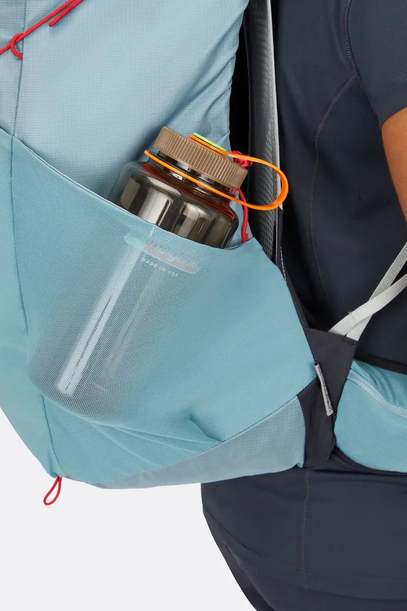 • Dual hipbelt pockets; one zipped and one mesh stash