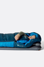 Looking for a sleeping bag that prioritises warmth, comfort, and practicality? That will give you an easy night’s rest in the wild, without compromising on weight or pack size? This ultra-warm, robust down-filled bag offers the reliable protection you need in cold conditions. Armed with 650FP duck down, a spacious wide mummy shape, windproof Pertex® Quantum fabric, and a clever baffle construction that maximises warmth for weight, it's perfect for backpacking and mountain treks.
