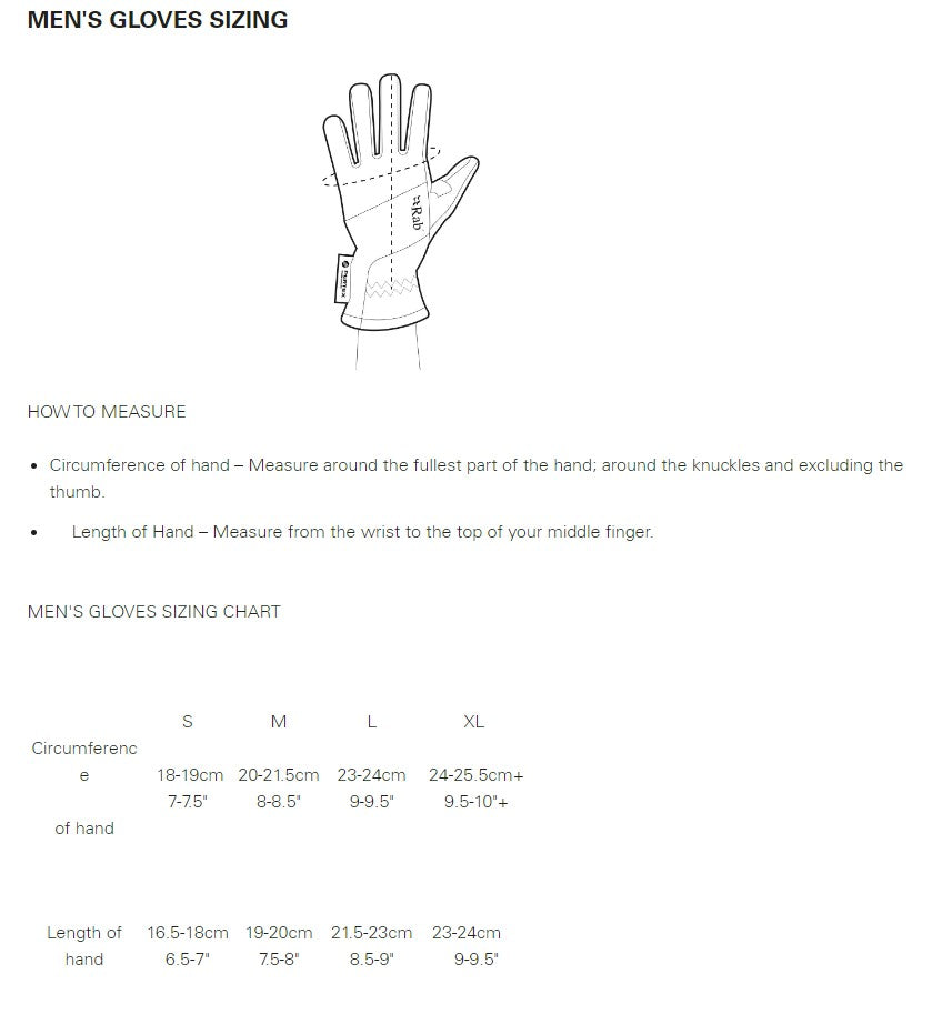 Men’s gloves sizing.
