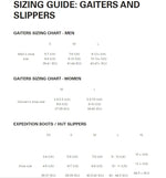 Gaiters sizing chart - men