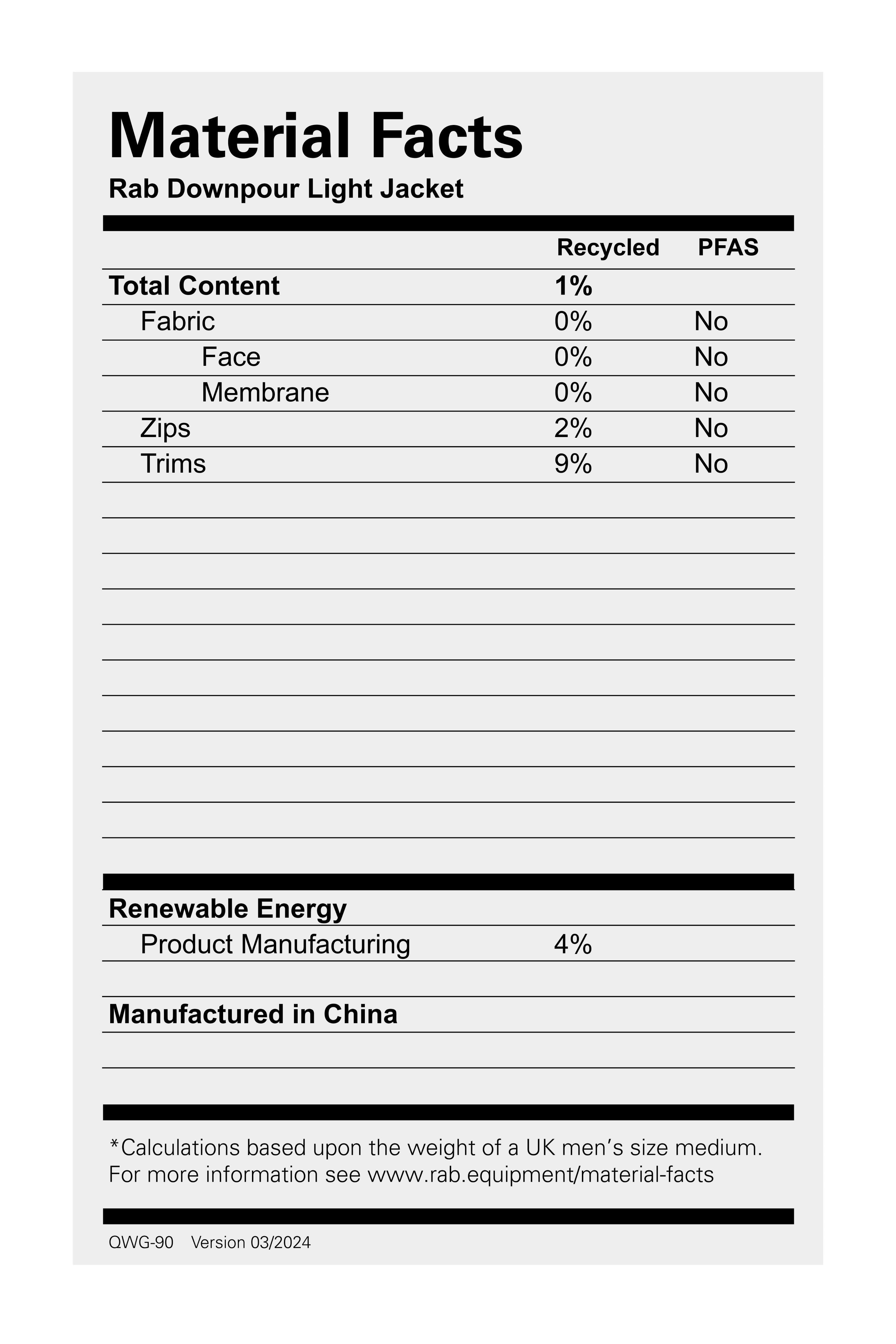 Comfortable and packable, the Downpour Light Jacket is your new staple shell for any mountain day with unpredictable weather.