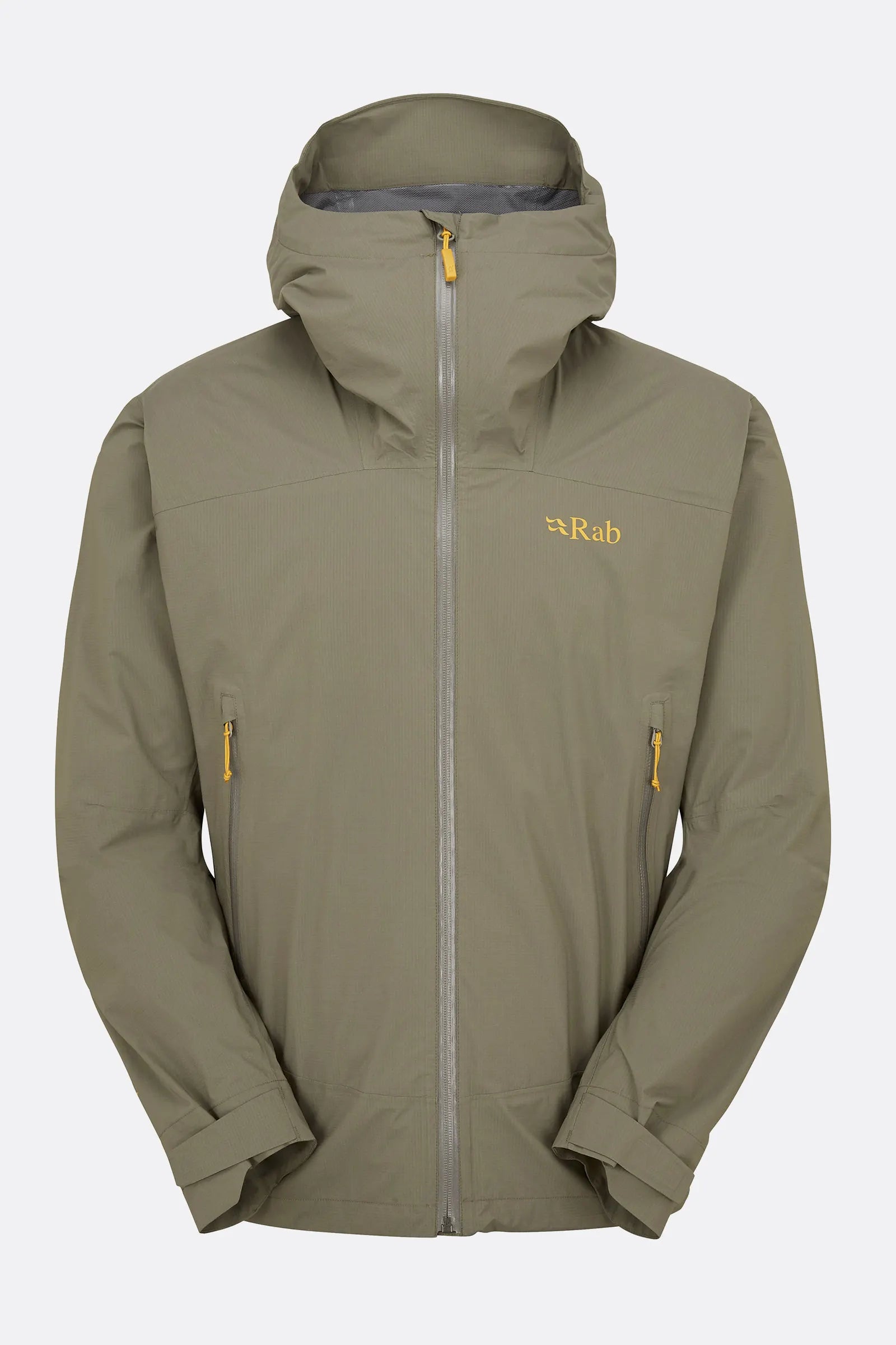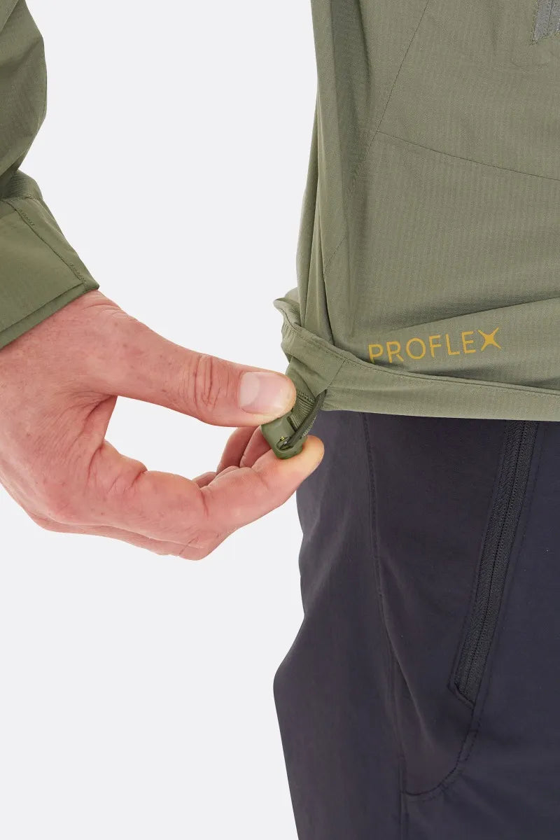 The supple 2.5-layer Proflex™ fabric is quiet and breathable, and has a soft, textured backer which is comfortable next to skin, so you can throw it on over a tee during a fleeting shower. With a streamlined design, it keeps features to a minimum, yet is equipped with everything you need for exploring beyond the treeline in fickle summer weather. The close-fitting hood can be adjusted around your crown and face with a single hand pull, and features a stiffened peak so that drizzle doesn’t restrict your vision. Seal out the elements using the low-profile hook and loop cuff adjustments, while the extended cuffs keep the wind off your hands, and the articulated sleeves allow a full range of arm movement. Access your essentials even when wearing a backpack thanks to the two pack-compatible zipped hand pockets.
