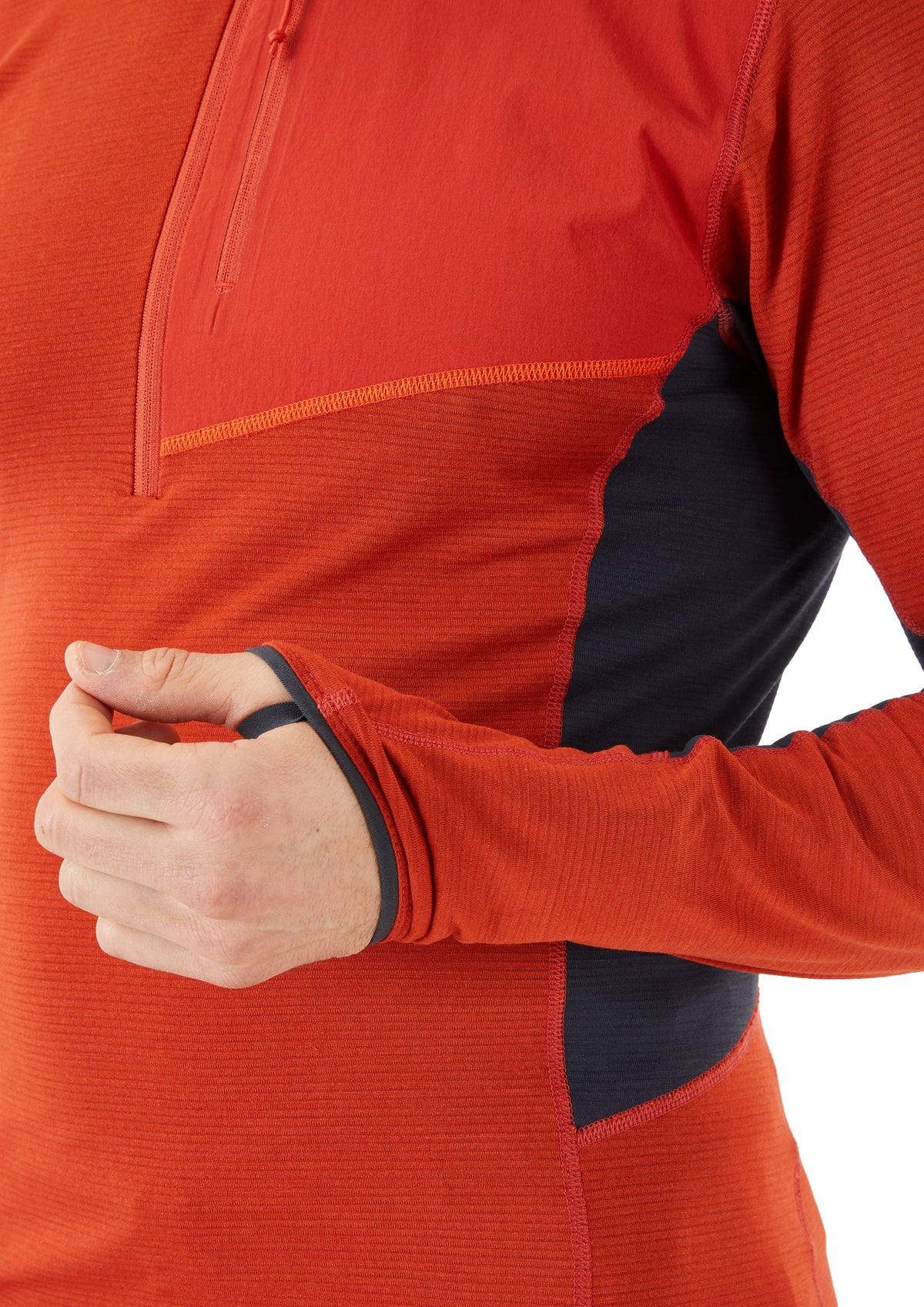 The superfine, Merino wool provides warmth, transports moisture vapour, and minimises odour, while the synthetic fibres maintain durability and improve dry time. The fabric is constructed to have alternating strips of lofted and smooth fleece, giving an exceptional warmth to weight ratio and rapid moisture movement away from the skin.Designed to work in sync with the conditions, the Syncrino Light Pull-On has a close-fitting collar for protection and warmth when needed, and the half zip gives quick ventilation when your pace picks up. It has a useful zipped chest pocket and hidden stretch thumb loops that enable a seamless fit with gloves on cold weather days.