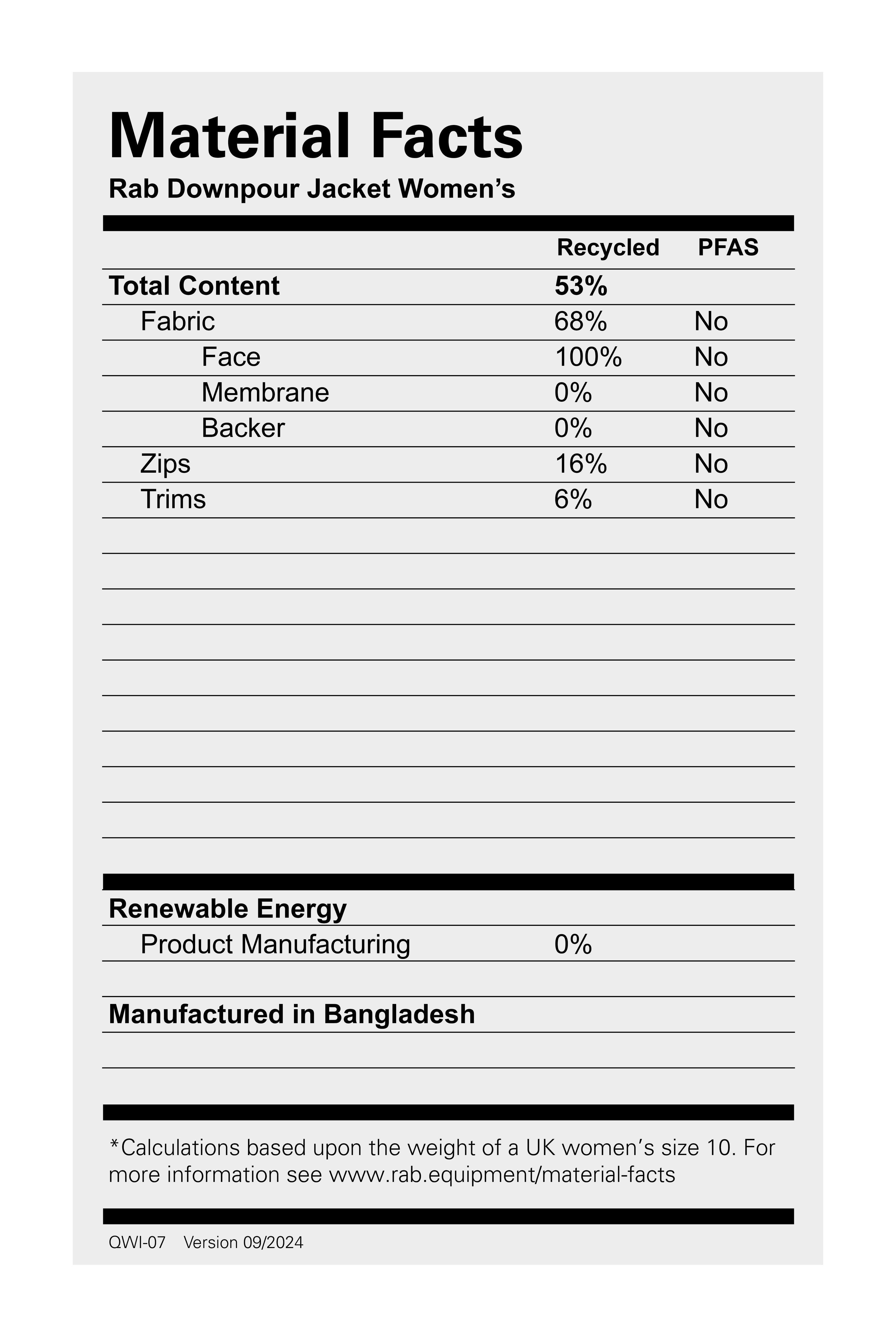 • Main fabric:50D Pertex® Shield 2.5-Layer construction waterproof technology with fluorocarbon-free DWR (122gsm) HH: 20,000mm/MVTR: 20,000 g/m2/24hrs