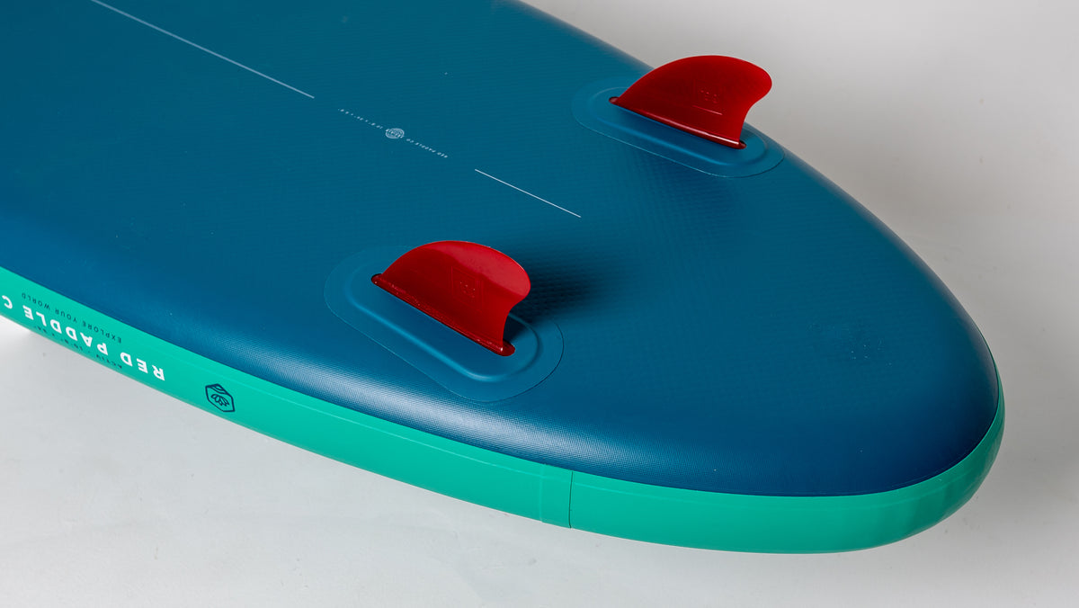 The carry handles have been moved to the side of the board so they don't get in the way. The final touch is the Red embossed EVA deck, which acts as a full yoga pad with a centre line down the middle of the board to help you position yourself and stay balanced. It's great for paddling too, so you can go to a perfect spot and relax properly, and with our industry leading Titan pump supplied as standard you can inflate your board without breaking a sweat ahead of your session on the water. Ergonomic tubular handles on all boards to give a cushioned, comfy grip when carrying your board.