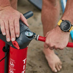 The Dual Cylinder system, combined with the Hi Flo handle means you are in complete control of the energy used to inflate your board. It puts the volume into your board faster and reduces the effort required to reach a higher pressure.